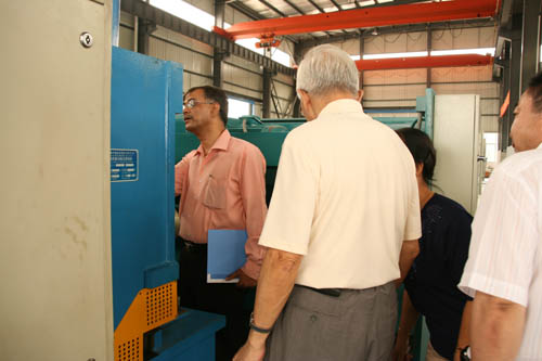在公司領(lǐng)導(dǎo)的陪同下,PRAKASH先生參觀了公司的成品車(chē)間和生產(chǎn)車(chē)間,對(duì)我公司的生產(chǎn)及研發(fā)能力表示出極大的贊賞。我公司智能化的辦公和流水線系統(tǒng)吸引了PRAKASH先生一行。在操作人員的協(xié)作下,有著二十多年從業(yè)經(jīng)驗(yàn)的PRAKASH先生對(duì)我公司的QC11Y大型機(jī)床進(jìn)行了細(xì)致入微的考察,而我公司的機(jī)床也以其過(guò)硬的品質(zhì)和精密的設(shè)計(jì)贏得了PRAKASH先生的好評(píng)。